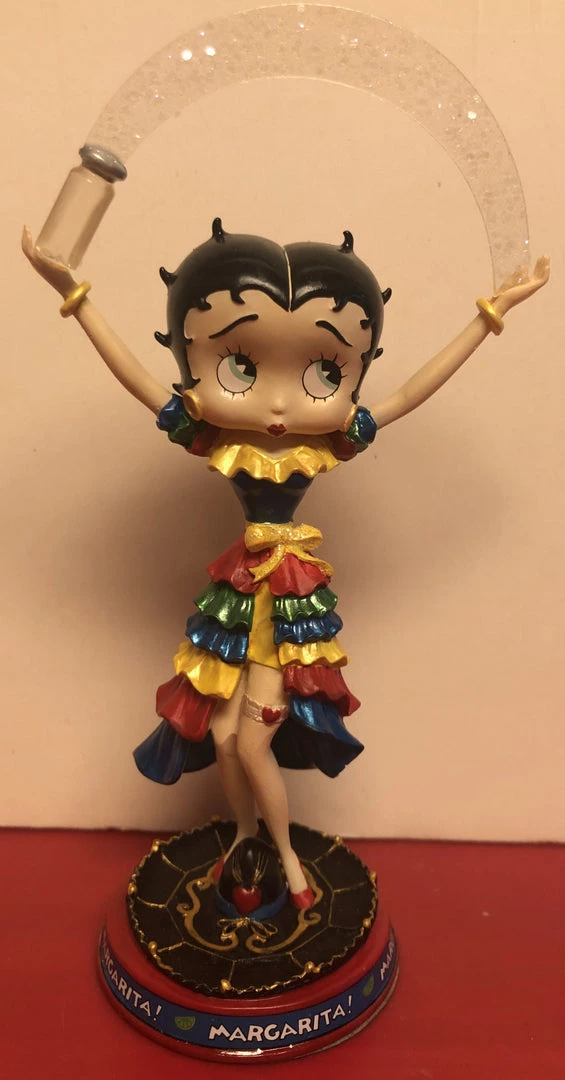 Betty Boop Danbury Mint Viva Betty Figurine is all dressed up fiesta style, with a margarita shaker in her hand mixing up a yummy drink. Has margarita! all around the bottom, very colorful figurine. 6″