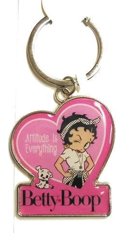 This cute Betty Boop Keychain has Betty winking with Pudgy. Strong key ring to hold your keys and says Attitude is Everything.
