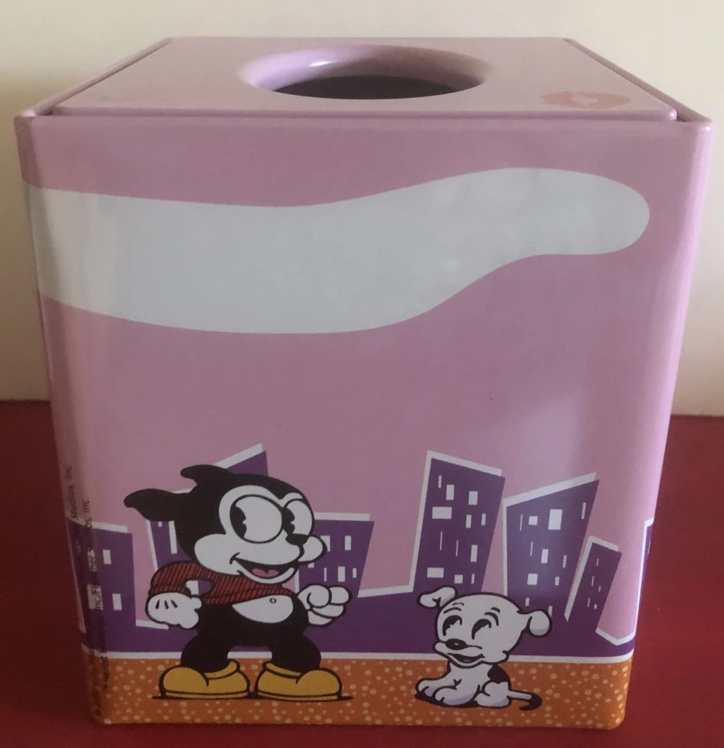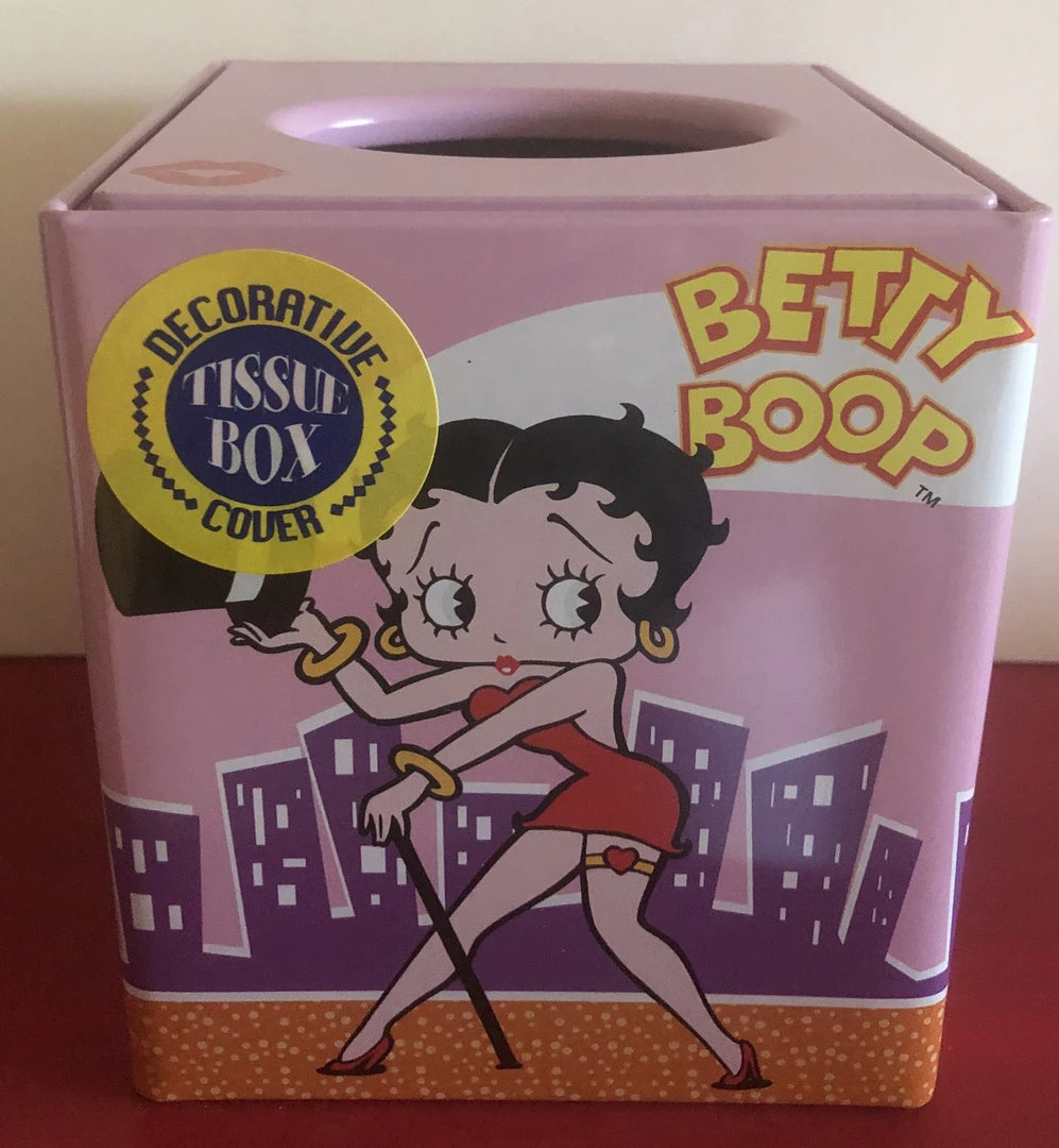 Betty Boop City Tissue Holder is made of metal and has Betty tipping her hat with the city buildings behind her. On the side has Kiko and Pudgy.