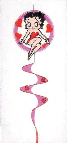 Betty Boop Classic Hearts Twister has Betty sitting in a loop or circle of hearts. There is a long twister tail to make it spin around. This is a great item for the garden or on a outside pole.