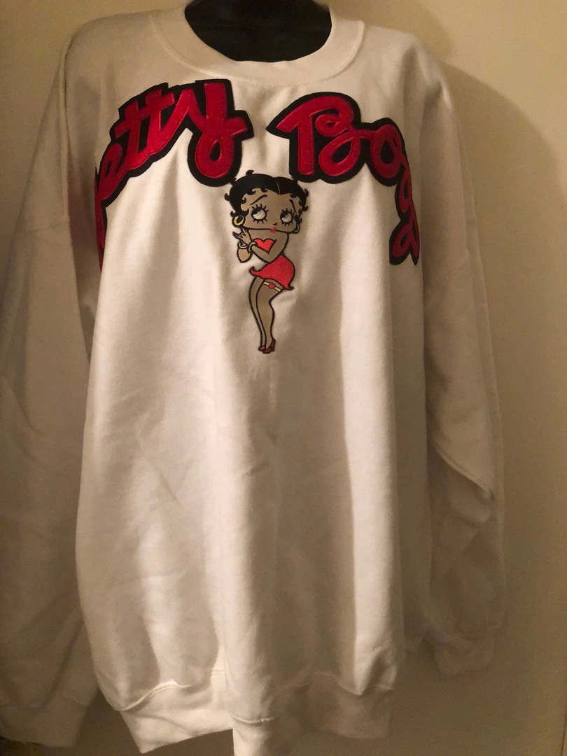 Embroidered raised Betty Boop over a Classic style Betty. Heavy warm sweatshirt.