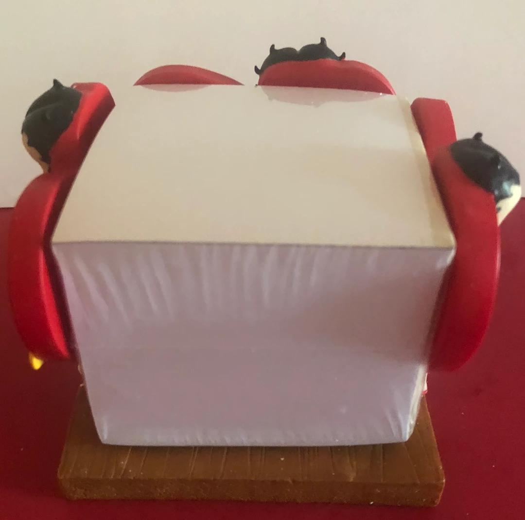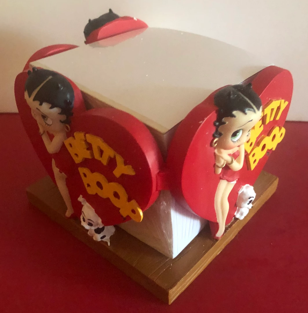 This fun desktop Note pad holder has 3 heart sides of Betty Boop in her red dress with Pudgy under the heart. Come’s with 1 large block of note pads.
