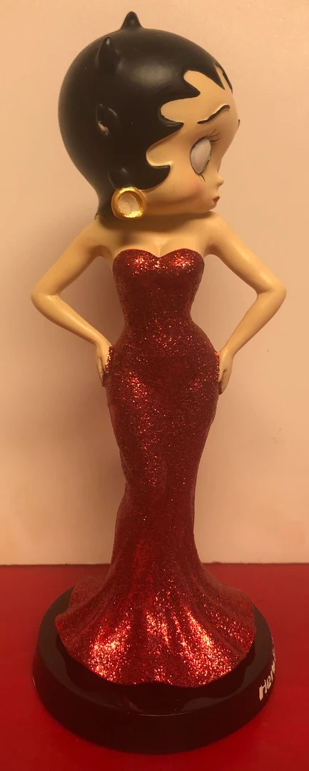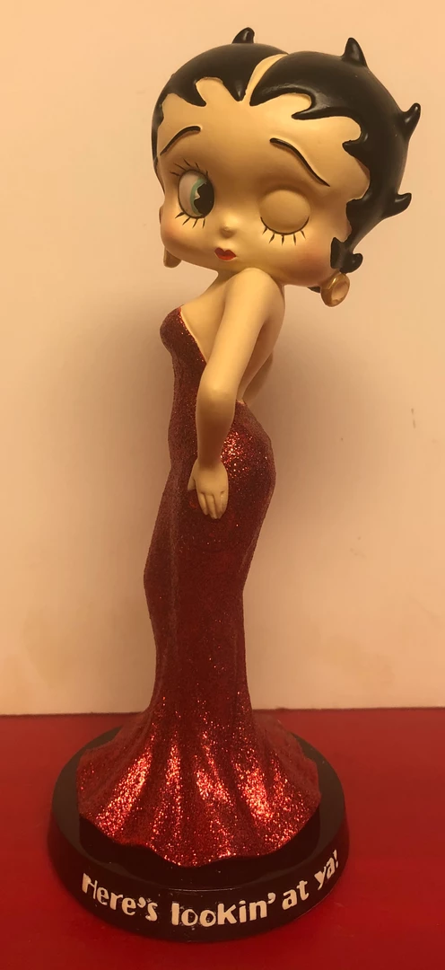 Betty Boop Here’s Lookin At Ya Figurine has Betty all dressed up in a beautiful sparkly red dress. She is winking and has her hands on her hips. The base reads Here’s Lookin At Ya!