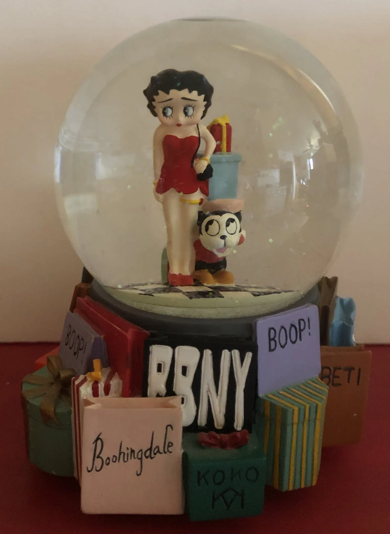 New York Brooklyn Style Snowglobe has Betty with her shopping bags and pudgy shopping with her. 7″ Retired 1998 PLAYS NEW YORK NEW YORK