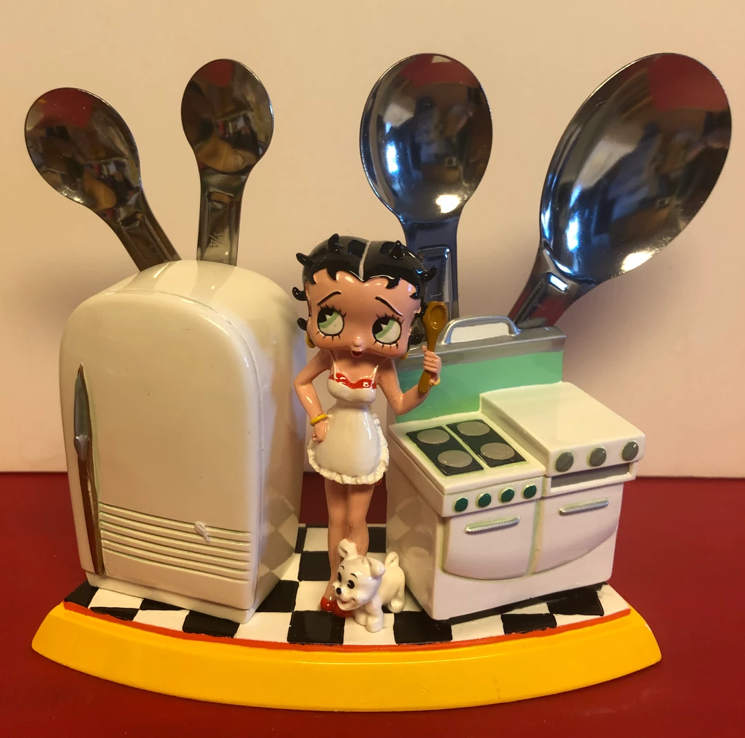 Betty Boop Kiss the Cook Spoon Holder. Includes 4 measuring spoons.