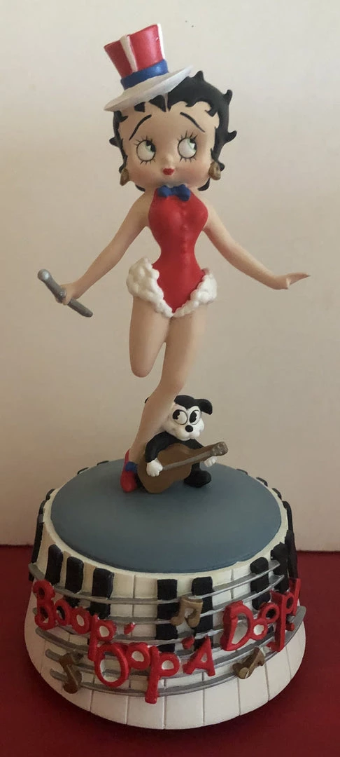 Betty Boop Musical Cabernet has Betty dressed up like a showgirl.Β Kinko is standing next to her on the keyboard and red notes stage.Β Play theΒ CABERNET THEME. 7 1/2″ x 4″