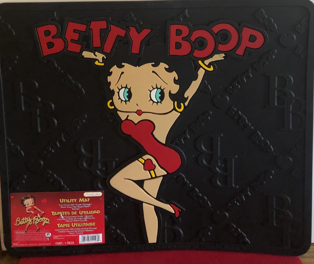 Has Betty in her red dress with Betty Boop above her head. In the rubber mat it also has BB and the words Betty Boop. Great for car mats or door mats. Heavy duty mats. 16 1/2″ x 14″ Fits most Autos.