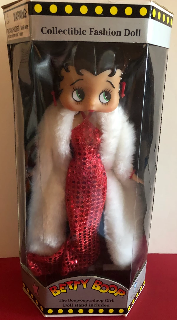 This beautiful Betty is dress for a night on the town in her red sequin dress and whit fur cover. 12″ Stand included
