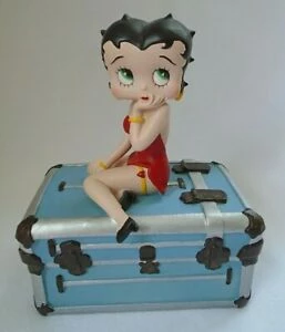 This cute Figurine has Betty sitting on top of a blue steamer trunk Approx. 6 in