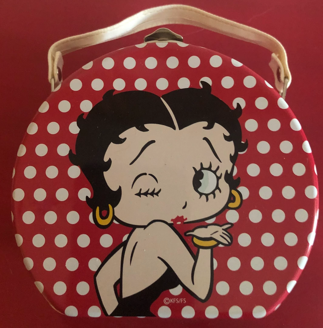 Betty Boop Square Polka Dot Watch. Has Betty doing the kick and Betty Boop on the face of the watch. Polka Dot Red and White Leather Band and comes in a very cute Betty Boop Trinket box tin. New Retired in 2008