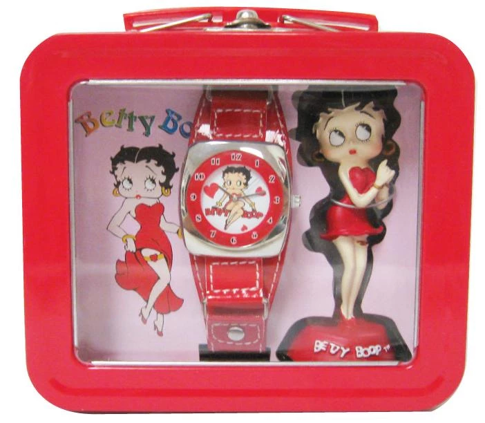 This gift set is in a tin box comes with a very cute Betty Boop watch with Betty sitting on her name with a red band and a Betty Boop Figurine. This is a wonderful gift set.