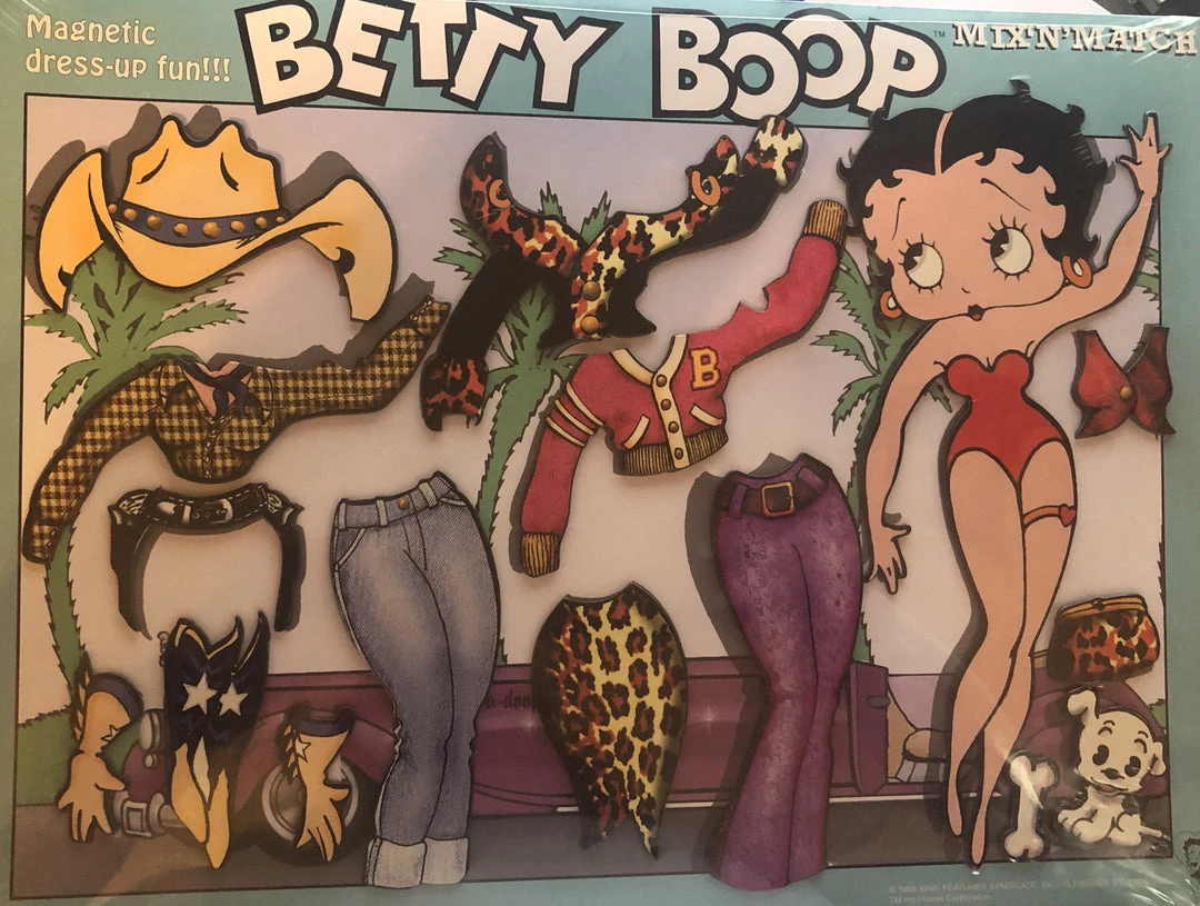 Betty Boop Magnetic Paper Doll Set. Comes with Betty and 15 accessories to dress her up with.