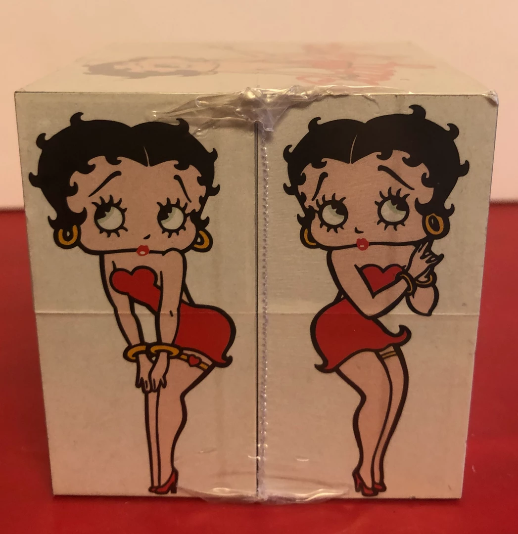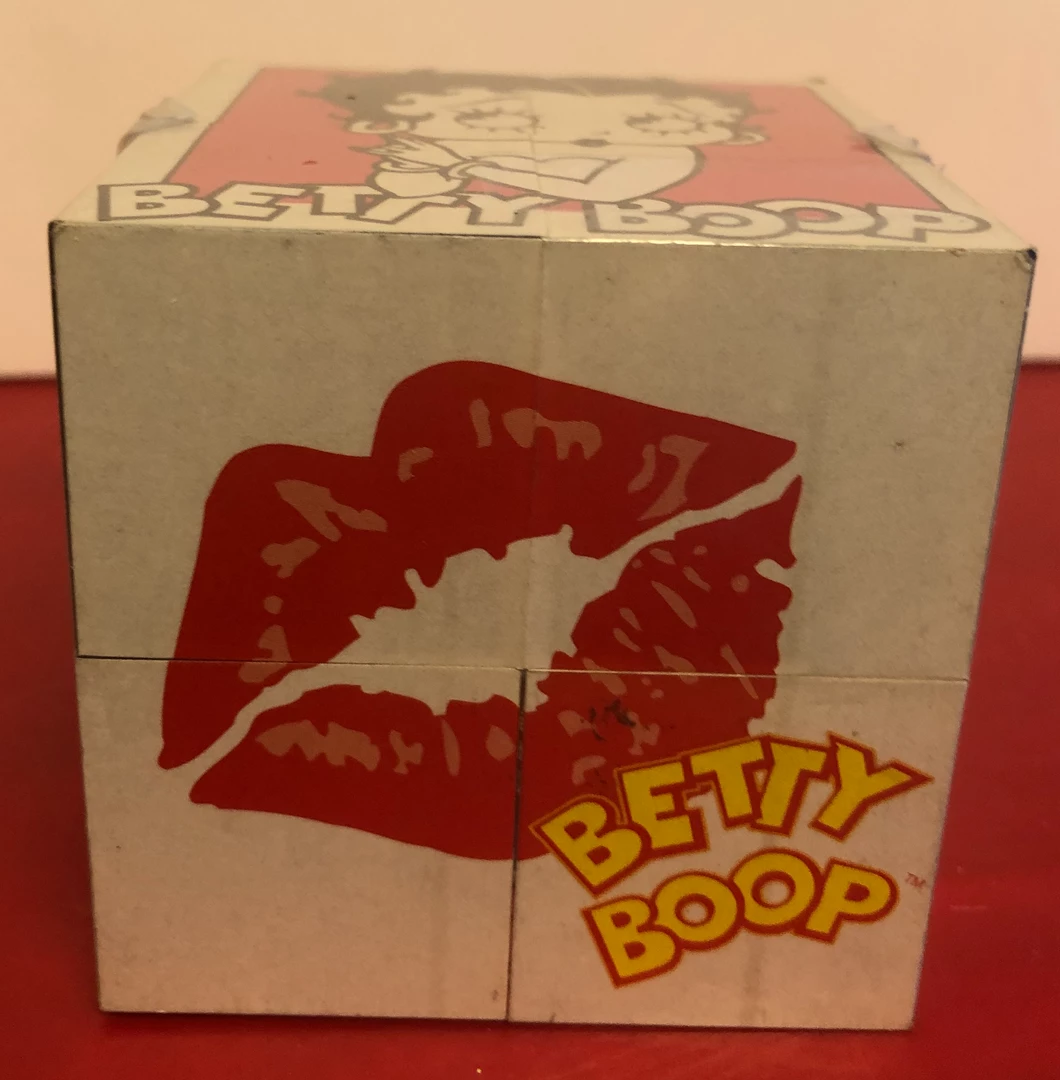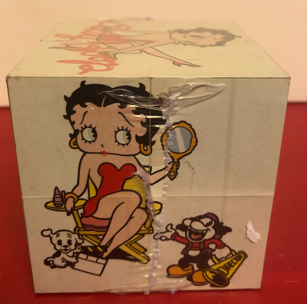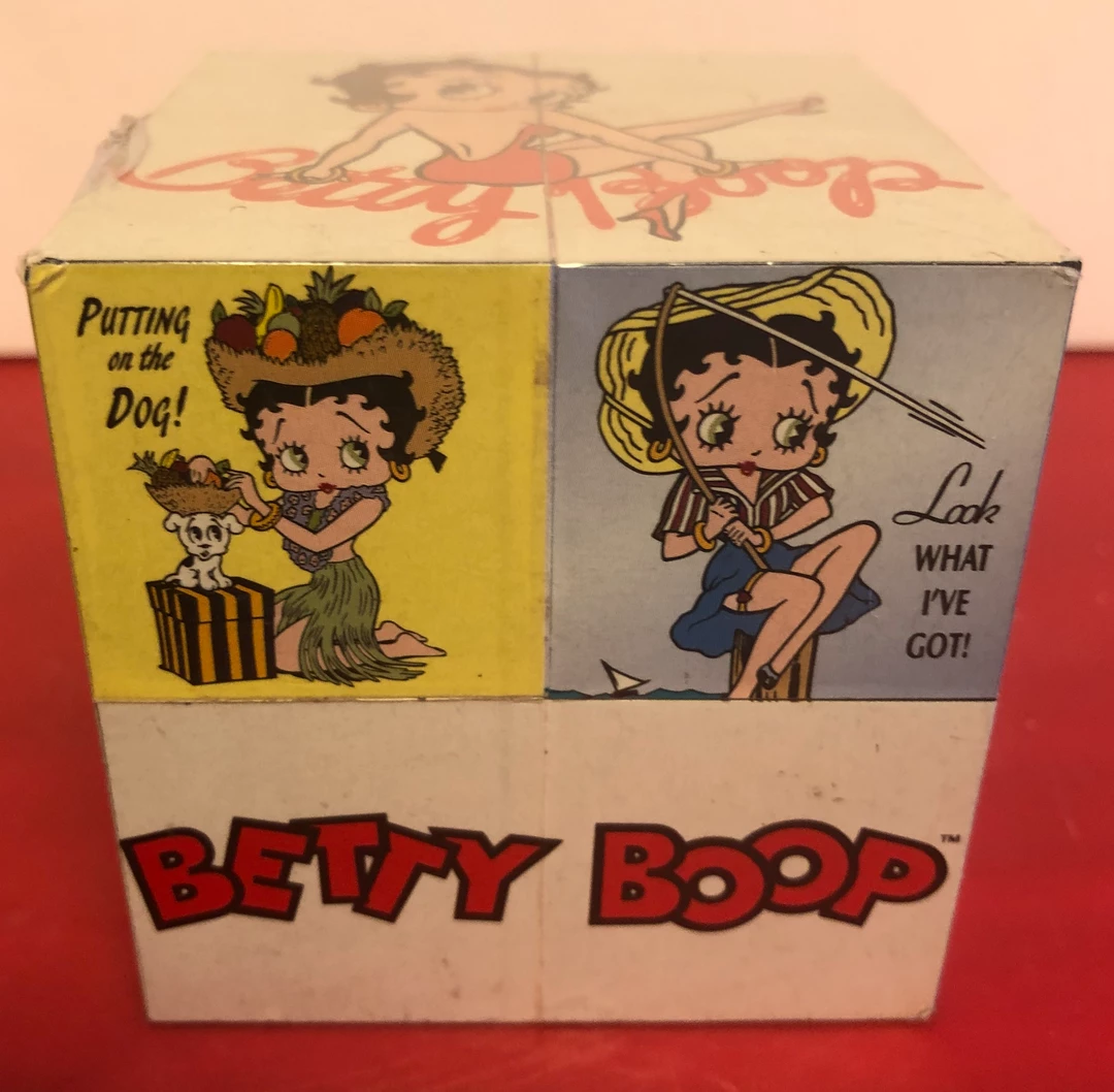 This fun nock off of the Rubik’s Cube done in Betty Boop. Has 6 different sides with 9 pictures. Hard to find and lot’s of fun. Block 3″ x 3″