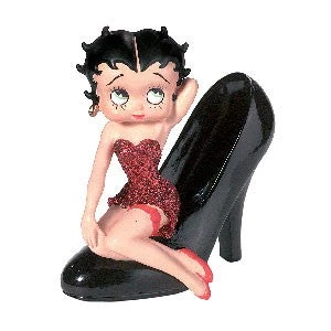 Betty is sitting in a black shoe is a glitter red dress. Hard to find piece.
