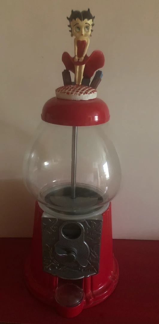 Vintage Betty Boop Gumball/Candy Machineย 15″ Tall by 6 wide at base and globe.